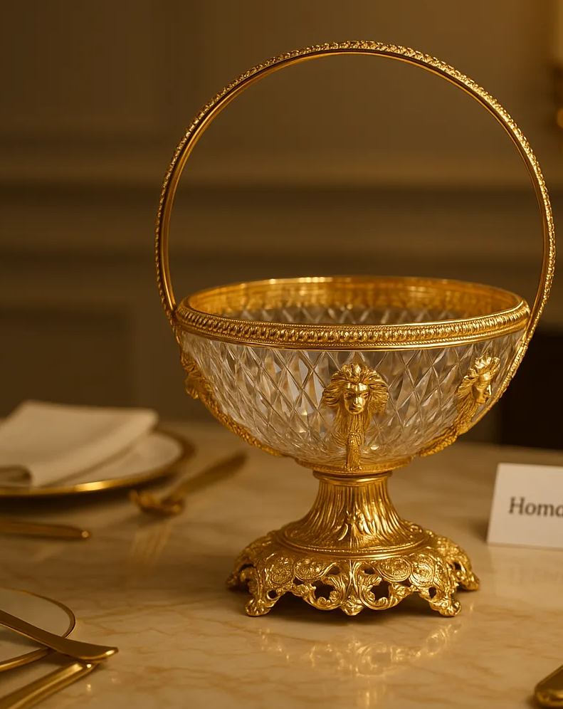 Premium Crystal & Gold Decorative Basket – CB-03 | Luxury Table Centerpiece for Home & Events